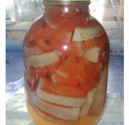 Ингредиенты: зрелые арбузы, яблоки, ржаная солома, листья вишни и черной смородины, 700-800 гр. соли на 10 л воды, промытый песок. Приготовление: Зрелые