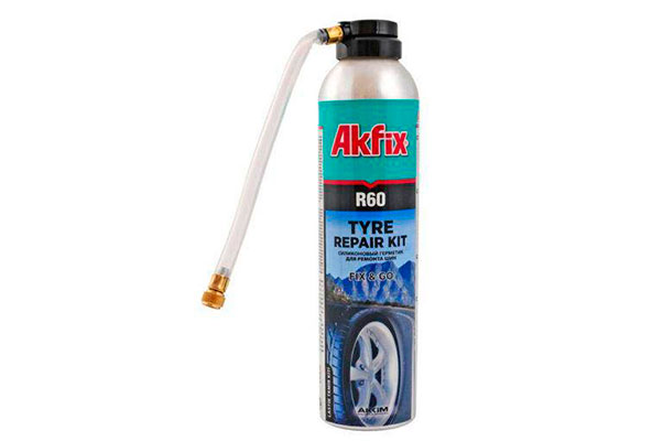 У каждого водителя в запасе должен быть герметик для автошин Akfix R60 OTV60. Данное средство реализуется в баллонах с распылителем и удобным коннектором. Для надежной заделки прокола необходимо использовать всю емкость за раз. Применяется без снятия колеса. Это распыляемая жидкая резина для шин, которая мгновенно застывает при распределении по поверхности.