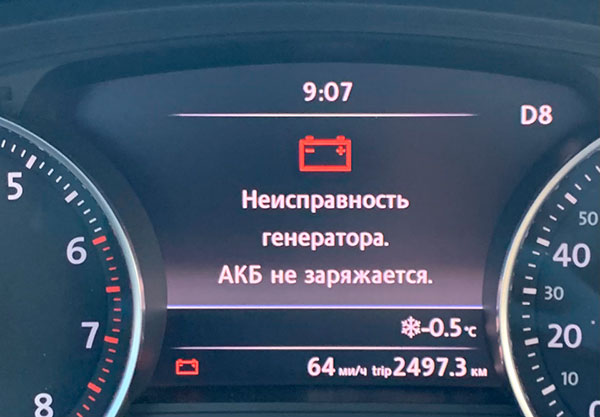 Горит лампочка аккумулятора на панели приборов из-за неисправности генератора