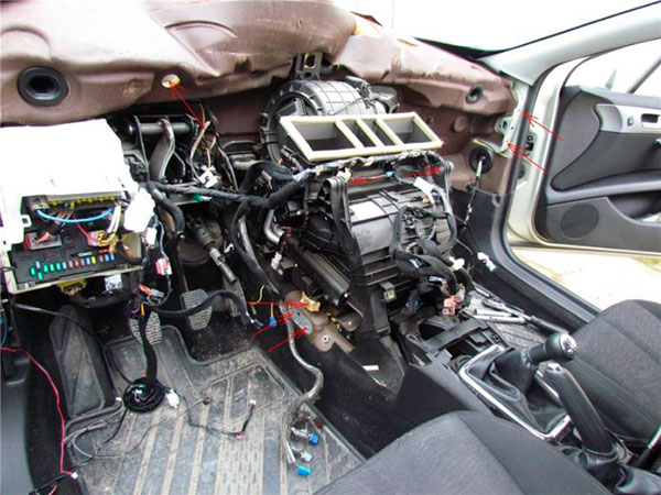 Климатическая установка представляет собой многофункциональный комплекс, состоящий из множества взаимосвязанных систем и механизмов. В него входит блок управления одним или несколькими вентиляторами, которые нагнетают охлажденный воздух в нужную зону салона. Также в состав системы входят приводы управления дефлекторами, который могут открываться на заданный угол, обеспечивая требуемую производительность.