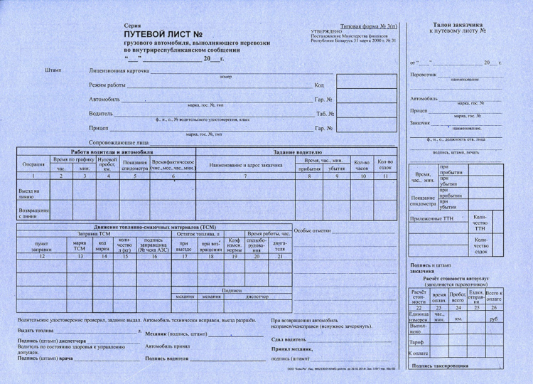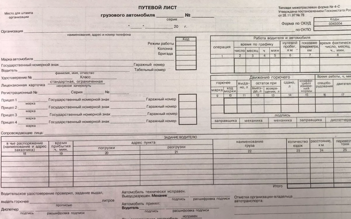 Как заполнить путевой лист