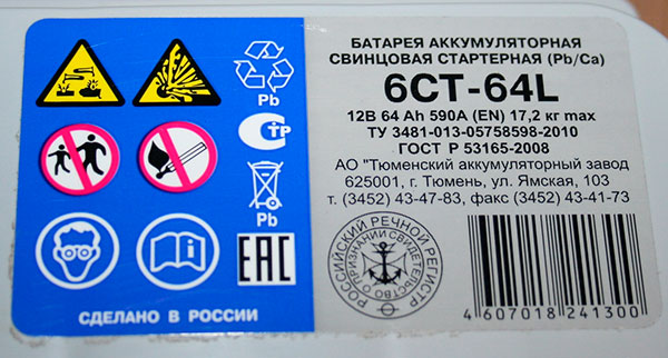 - Тип аккумулятора: Российская маркировка также может включать обозначение типа аккумулятора (например, кислотно-свинцовый, AGM, гелевый).
