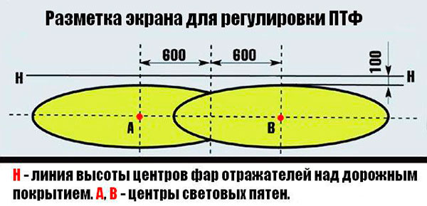 Чтобы настройка фар была правильной, сначала необходимо ознакомиться со схемой свечения. Во многих руководствах по обслуживанию автомобилей имеются соответствующие иллюстрации, показывающие форму пятна и расстояния для ближнего и для дальнего света.