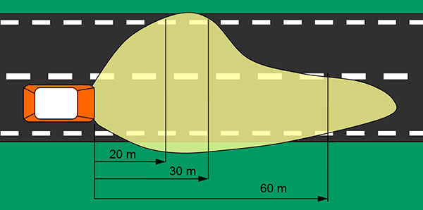 - в правом углу он должен светить дальше, чем в левом, чтобы водитель смог быстрее заметить пешеходов;